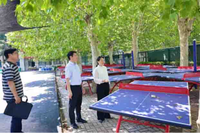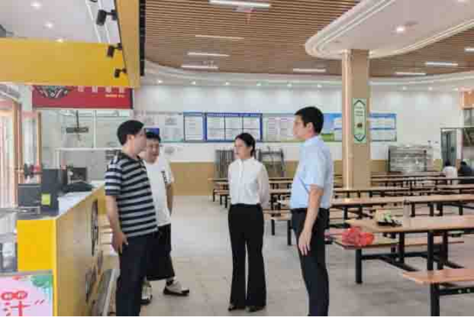 邢淑婕一行先后深入学生宿舍、操场、食堂等重点区域施工现场,查看工程细节,认真听取各项目负责人关于安全管理、工程质量、项目进展等方面的汇报,对各项目当前进展成效给予充分肯定。在宿舍施工现场,邢淑婕认真查看墙面、地面、卫生间等翻新细节,强调“宿舍是学生的第二个家,必须美观、实用、环保、安全”。